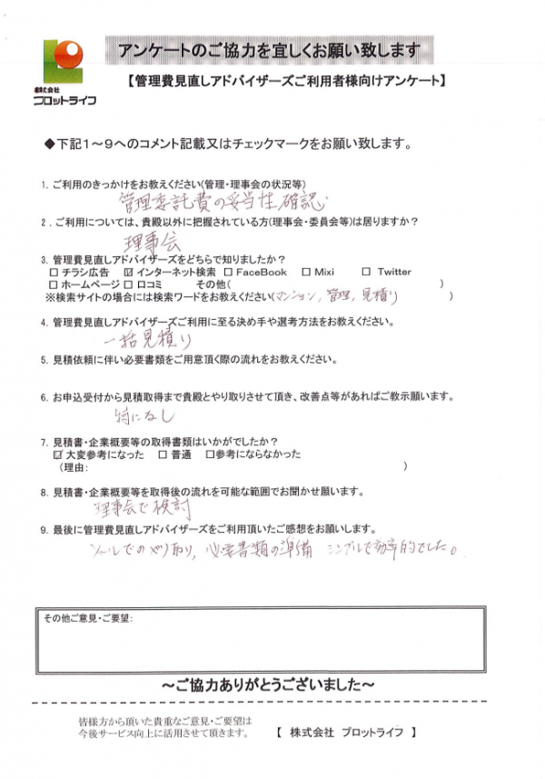 複数管理会社からの見積取得のお申込みは管理費見直しアドバイザーズ問い合わせフォームよりお願いします。