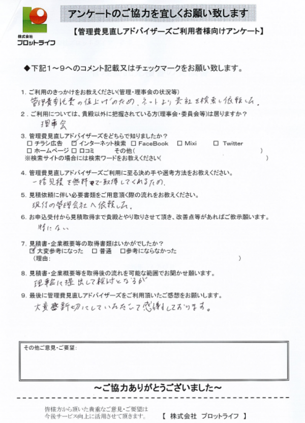 ・管理委託費の値上げのため、ネットより貴社を検索依頼した