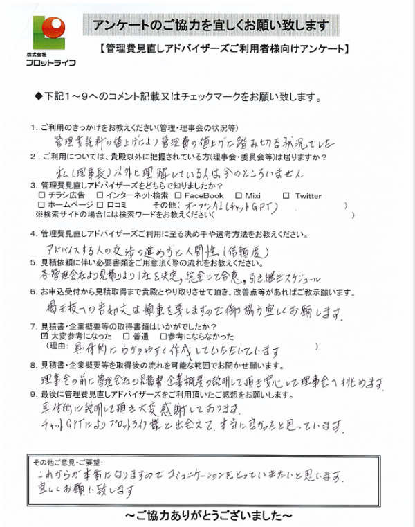 ・理事会の前に管理会社の見積書・企業概要の書類が届き安心して臨めました